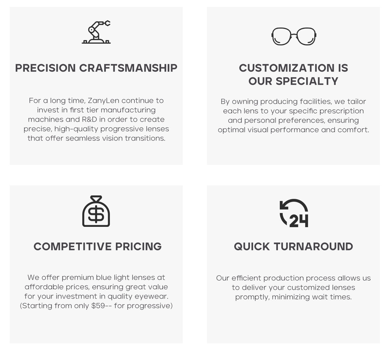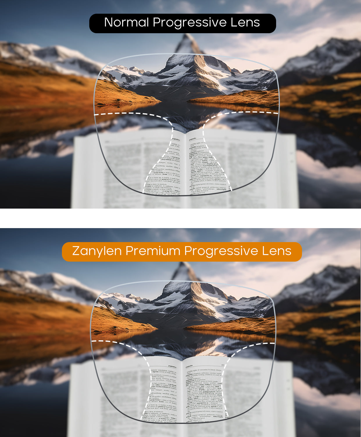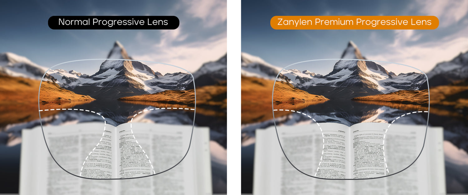 Progressive lenses are a type of eyeglass lens that corrects vision at near, middle, and far distances. This is all done within a single lens, without the harsh line that bifocal and trifocal lenses have. Progressives are an excellent solution for people who have both blurry near vision and distant vision.
